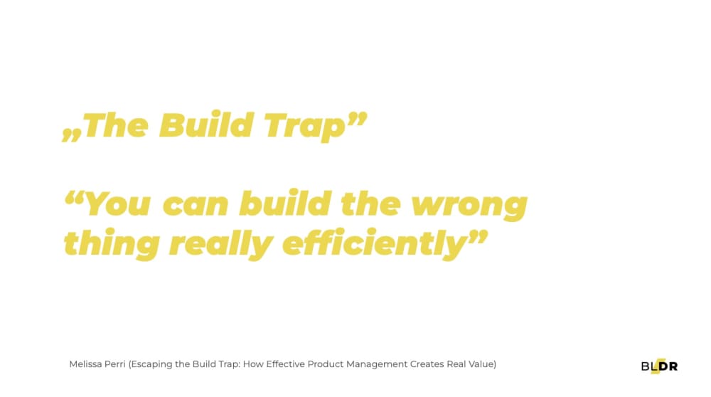 When we started reflecting on our situation, we saw the larger pattern: many companies, including ours, had fallen into the trap of focusing on outputs rather than outcomes. We were measuring success by the number of workshops, not by the value those releases brought to the client or business. We were caught in the “build trap” – a term coined by Melissa Perri in her book Escaping the Build Trap, which refers to delivering functionality without considering its real business impact.